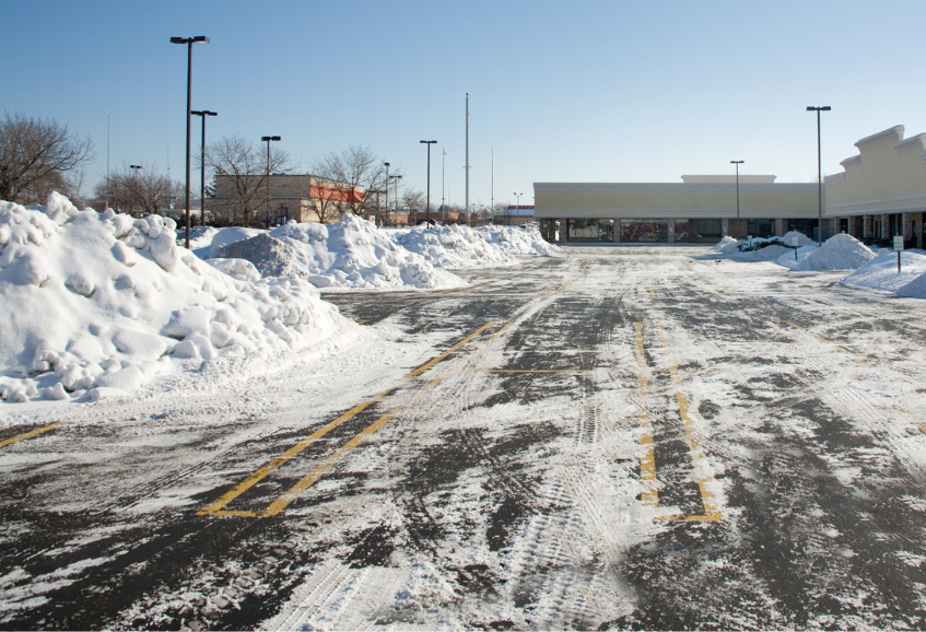 ・駐車場の雪山で来店台数が減っている